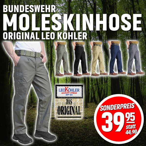 Bundeswehr Moleskinhosen Original Leo Köhler, Stonewashed, Nässeschutz